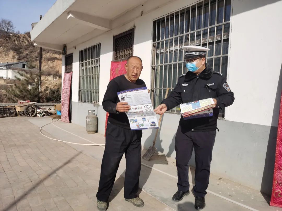 为进一步确保辖区“严防控、降事故、保春运”工作全面开展,切实加强农村冬季交通安全宣传教育工作实效,不断提升农村地区交通参与者的交通安全意识、规则意识、法制意识和文明意识。依托辖区宣传阵地,从源头上预防和减少道路交通事故,努力营造畅通、安全、文明、有序的农村道路交通环境。2021年1月20日,延安市公安局交警支队直属二大队川口中队民警走进辖区同岔村开展“严防控、降事故、保春运”农村道路交通安全宣传活动。